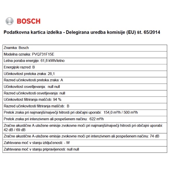 | -Razred učinkovitosti filtriranja maščobe: B . |