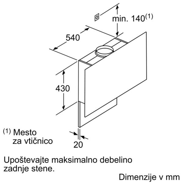 | Dimenzije (kroženje zraka) vključujoč okrasni pokrov zračnika (VxŠxG): 1029-1299 x 590 x 263 mm |