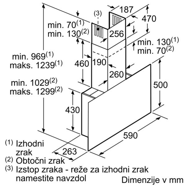 | Dimenzije – odvajanje zraka (VxŠxG): 969-1239 x 590 x 263 mm |