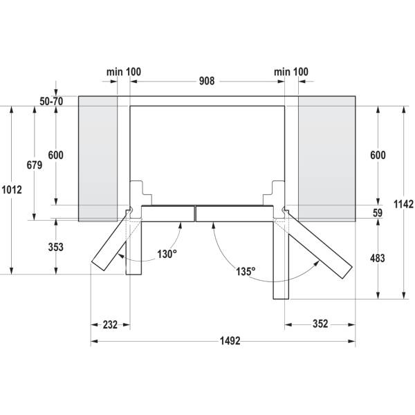 - Odpiranje vrat Hladilnik desno/zamrzovalnik levo